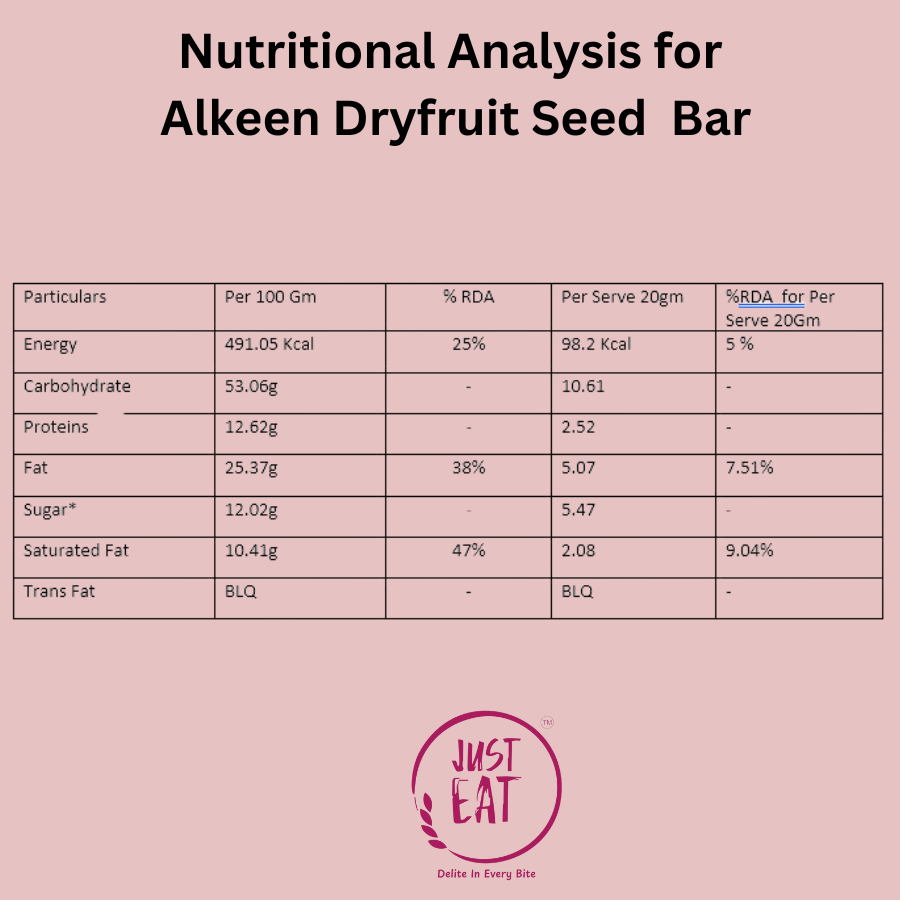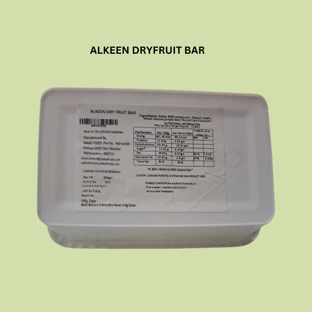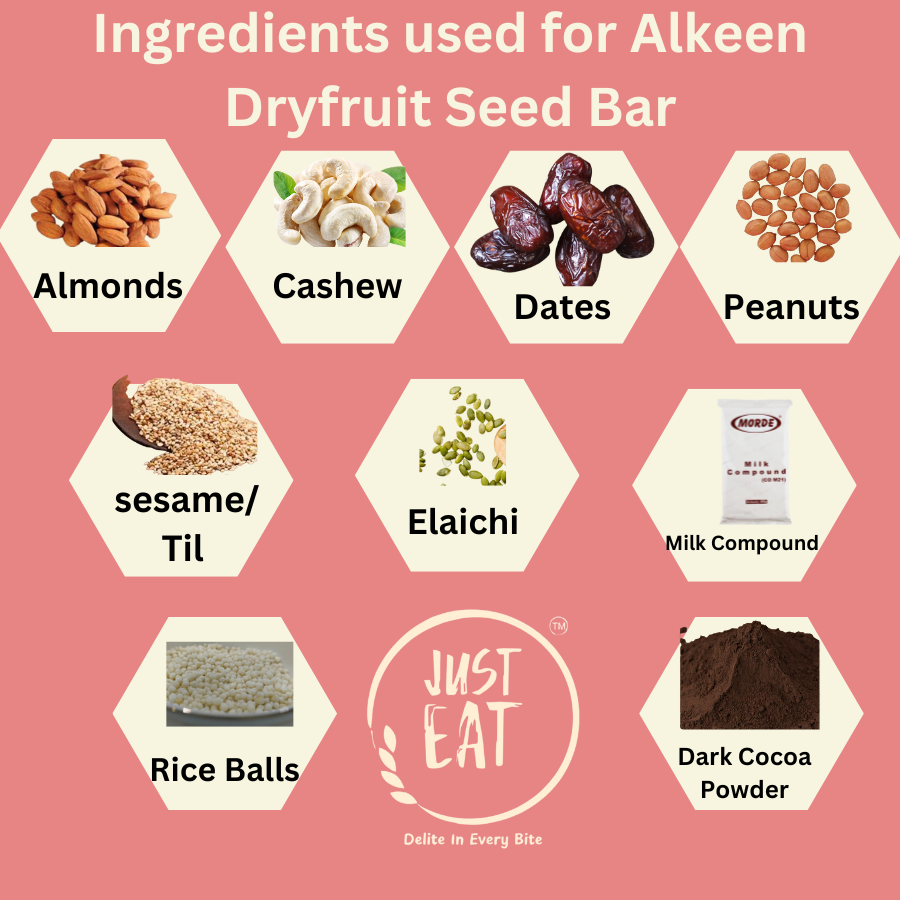 Alkeen Dry Fruit Seed Bar is Healthy Energy Bar prepared with natural ingradients and is perfect combination of dry fruits (Dates,Almonds,Cashew) and Pumpkin seeds,which is not only delicious but gives good amount of energy and proteins along with minerals such as magnesium,Phosphorous etc.