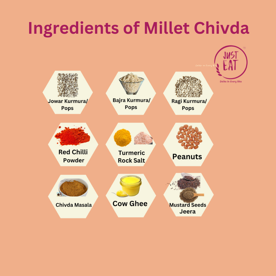 Millet Chivda – Made with Ragi, Jowar & Bajra Kurmura, Cow Ghee & Peanuts